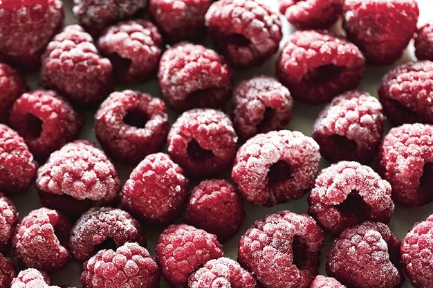 Frozen red raspberries are harvested at ripeness and frozen within hours. They can be added to smoothies, oatmeal, sauces, and meals. Shoppers can find frozen red raspberries in the freezer aisle labeled "Product of the USA."
