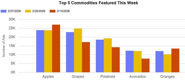 Retail produce ads dip 3% as grapes lead fruit promotions