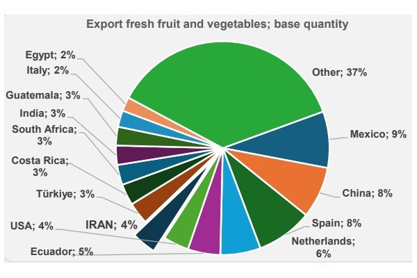 The Gulf states and Iran play a major role in the fresh fruit and vegetable market. The Gulf states import more than $6 billion worth of fresh fruit and vegetables annually, accounting for more than 8 million tons. Iran, on the other hand, is primarily an export country, with about 5.5 million tons of fresh fruit and vegetables leaving the country each year, valued at more than USD 2 billion. This ranked Iran seventh worldwide as a fresh fruit and vegetable exporter in 2023, ahead of neighboring Turkey. Iran's main markets are Iraq, the United Arab Emirates, Russia, Afghanistan, India, Pakistan, Oman, and Qatar.