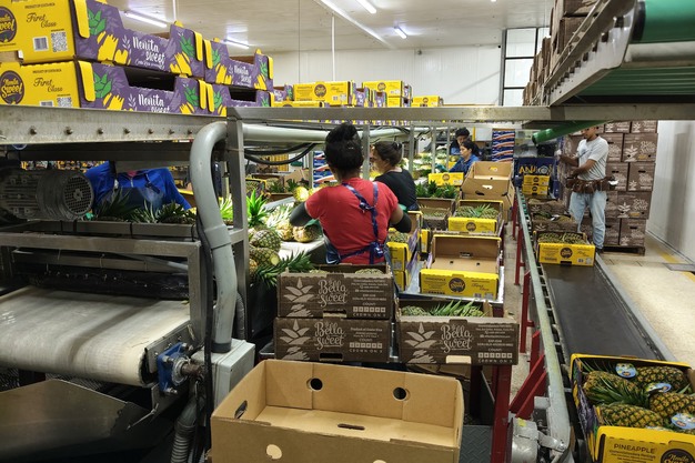 Growing a yellow pineapple is technically demanding. Every piece of fruit is wrapped on the plant to encourage the natural development of colour, though the results are never entirely predictable. The process requires selective, daily harvesting, allowing each fruit to reach the desired colour point rather than picking everything at once, as is done with conventional green pineapple. Colour grades are sorted at the packing facility, starting with full green, mid-colour, or full colour, depending on the customer's order and the transit time to the destination.