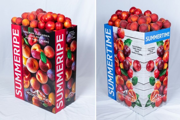 Mountain View's stone fruit will be featured in newly redesigned packaging with refreshed retail bins, boxes, and bags. The merchandising bins will be used to enhance store stone fruit displays, capturing additional impulse purchases. Redesigned packaging is available for all three brands, including Summeripe, Summertime, and Autumnripe stone fruit.