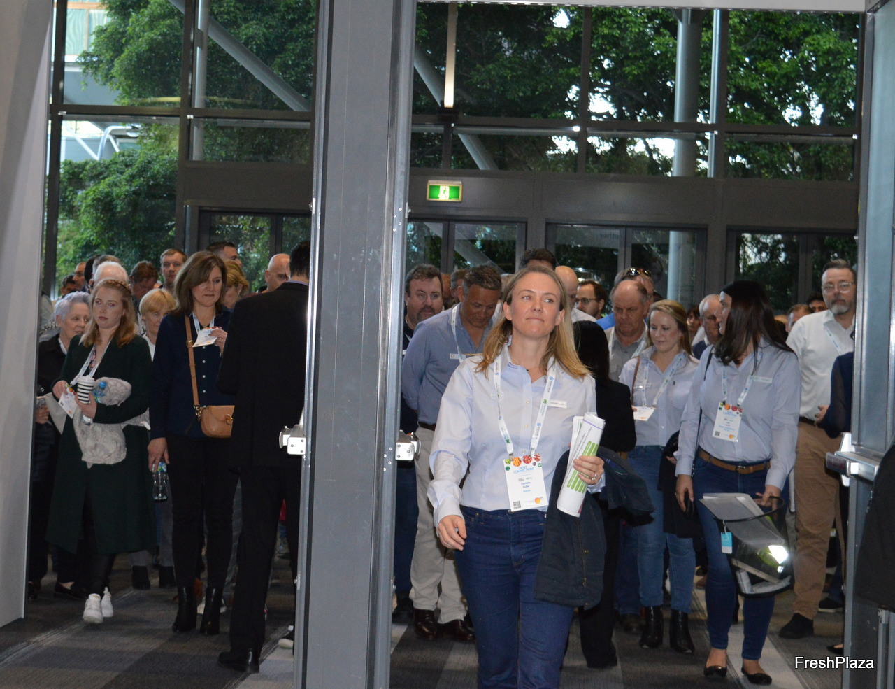 Crowds waiting to enter the event.