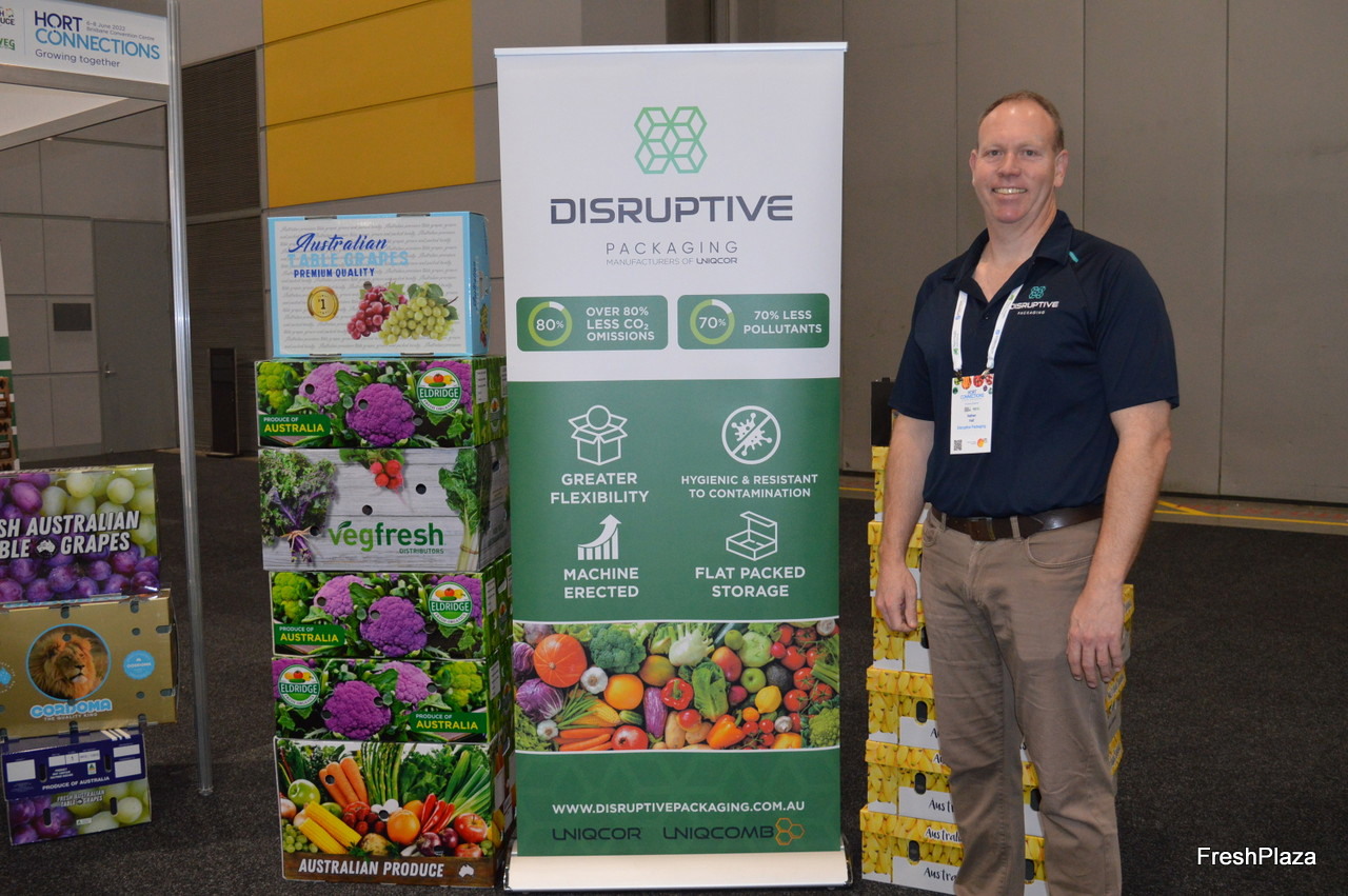 Disruptive Packaging’ products are waterproof, leak proof and can be sanitised and used again. The company has a range of boxes, bins and pallets. Nathan Hall – Disruptive Packaging.