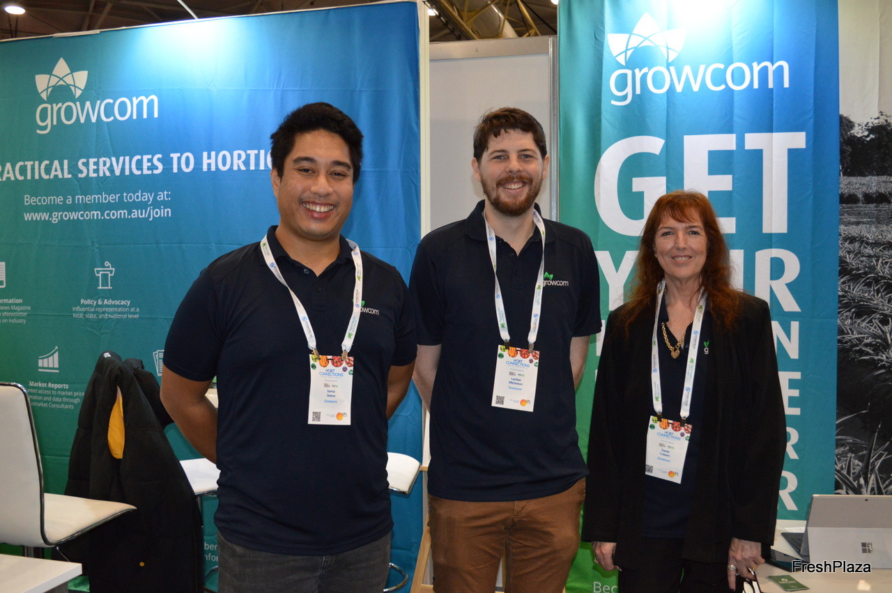 Sam Selave, Lachlan Micherson and Desda Culleam at the Growcom stand.