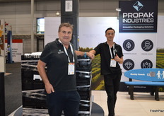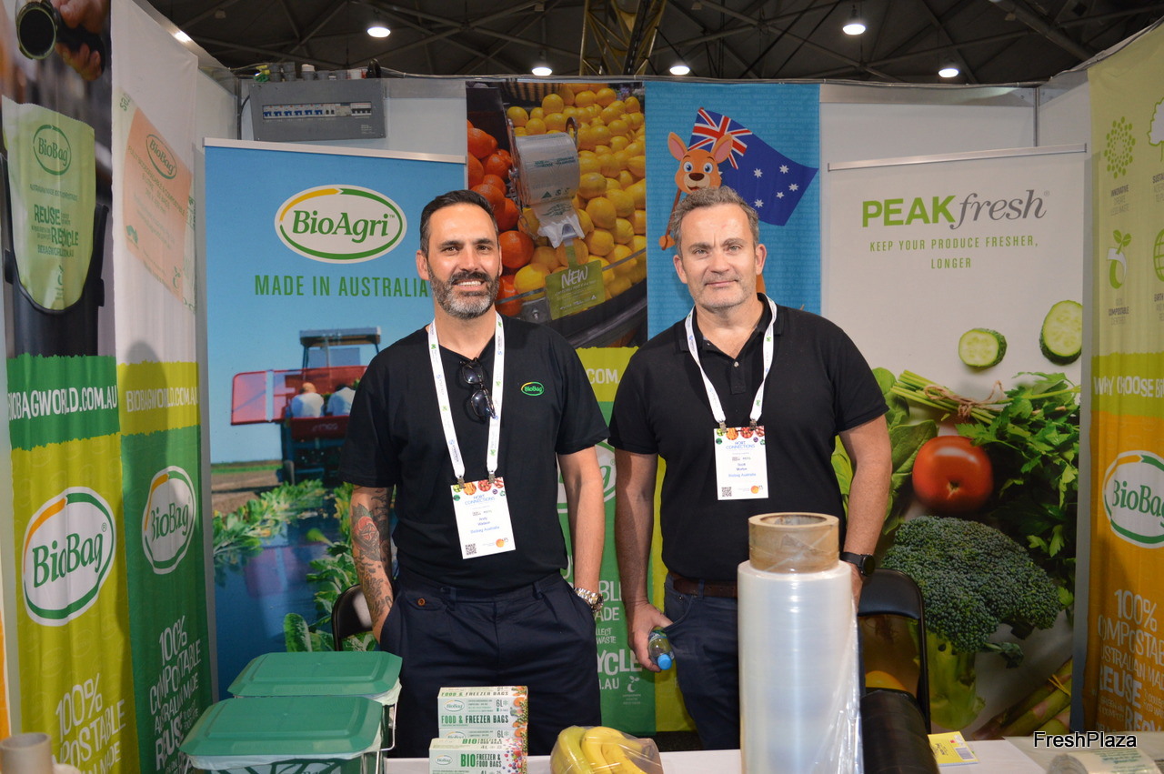 Andy Watson and Scott Morton at the PeakFresh stand with compostable lining and mulch films and new BioBags.