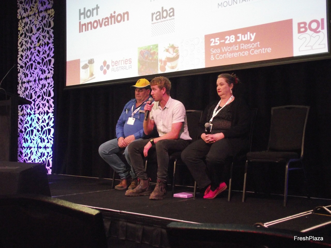 Steve Fuller from Bee Services, Dr Cooper Shouten from Southern Cross University and Berries Australia Executive Director Rachel Mackenzie with a Varroa Mite Q&A Session.