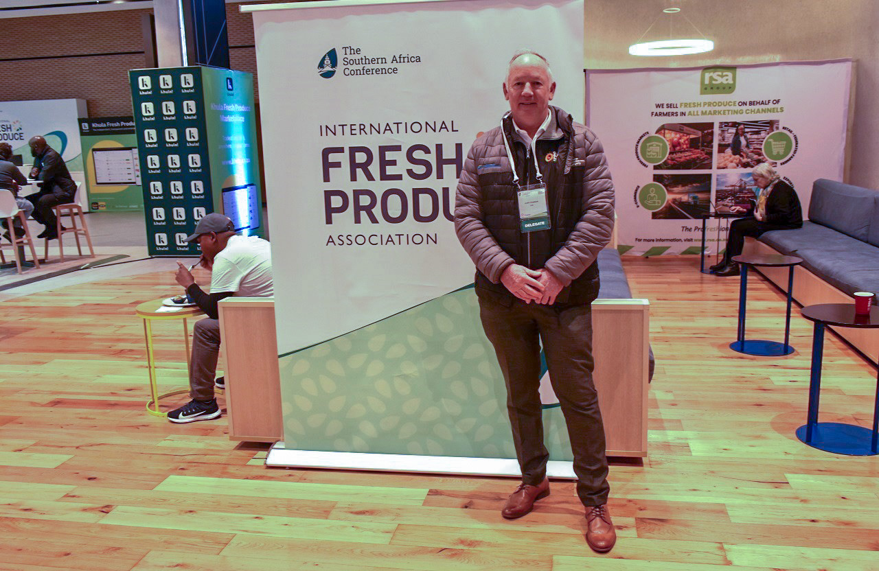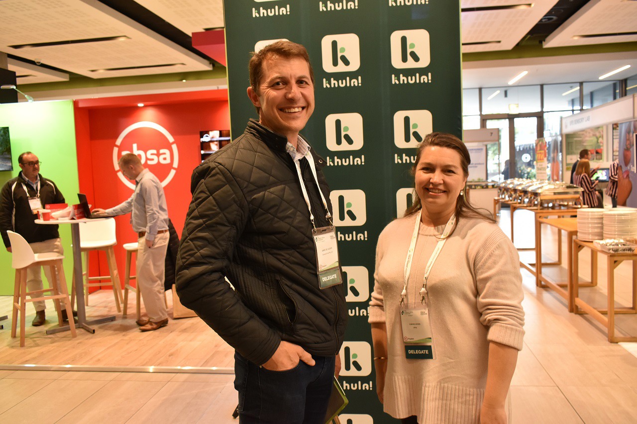 Awie de Jager, Delecta Fruit CEO, with Lianne Jones of Fruitalyst.