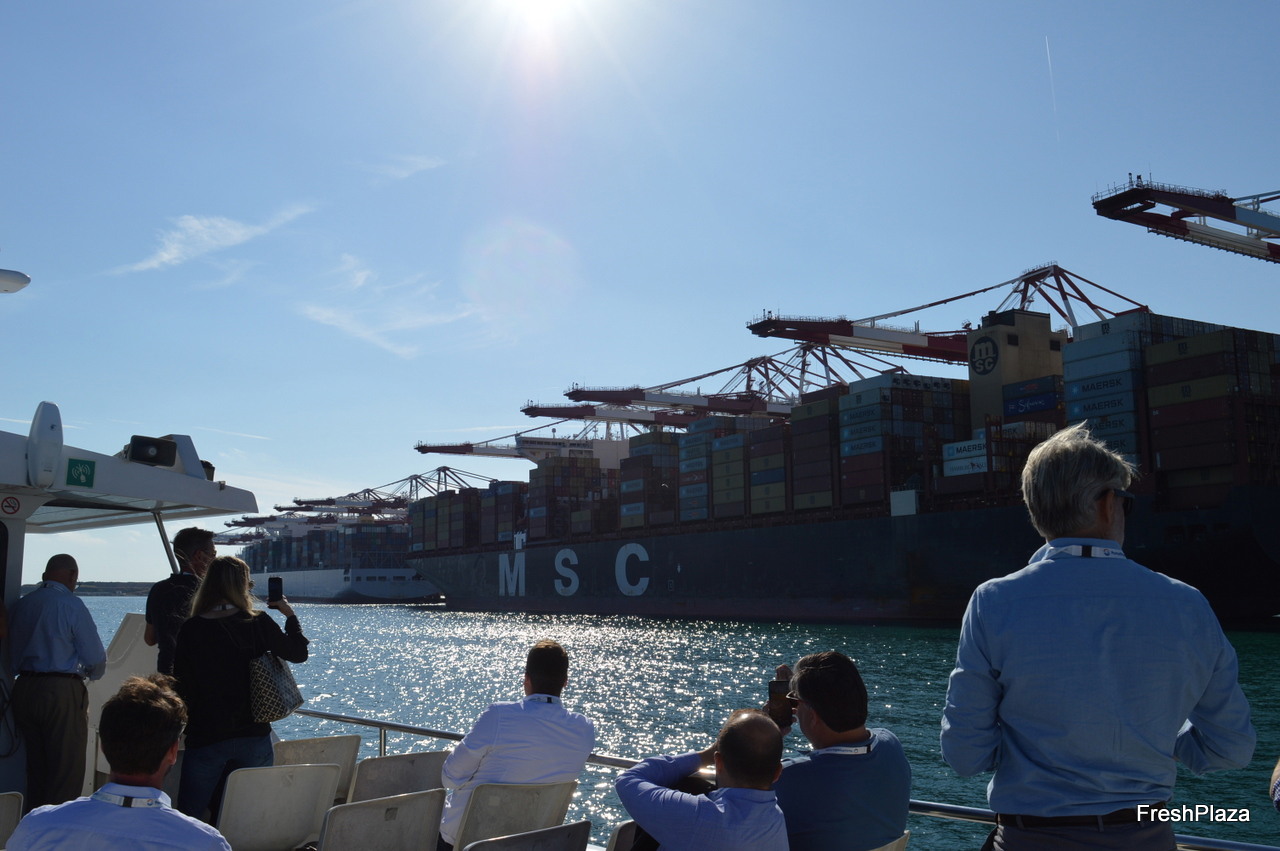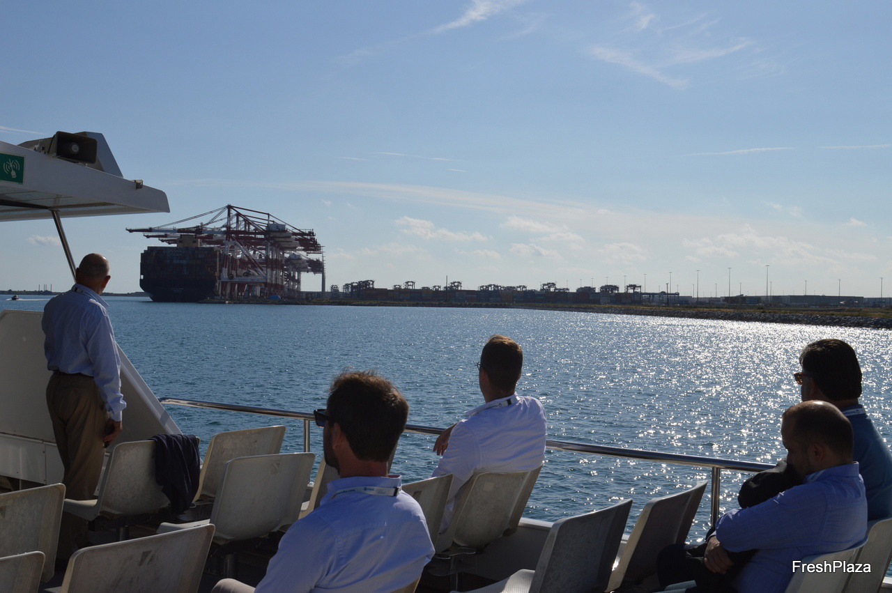 The delegates were shown around the Best Terminal operated by Hutchinsons Port and then took a boat tour. This is the first semi-automatic terminal in the southern Mediterranean. The terminal has 2,300 plugs currently in operation, this will soon be increased by an additional 1,400 plugs.