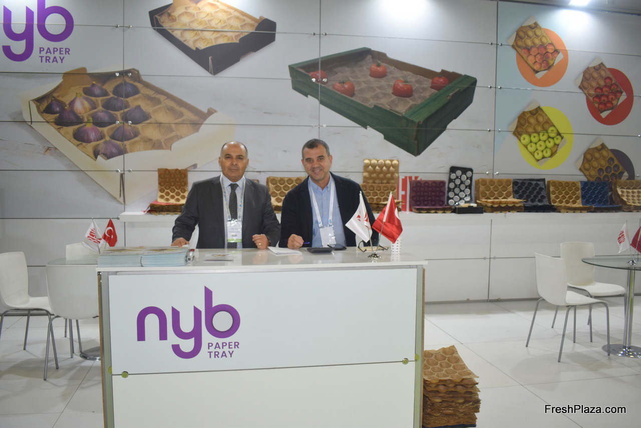 On the left is Kubilay Bulut, on the right is Mesut Naum Ben. They represented Nyb packaging. There packaging suits all fruits and is also exported to Israel, Greece and Poland.