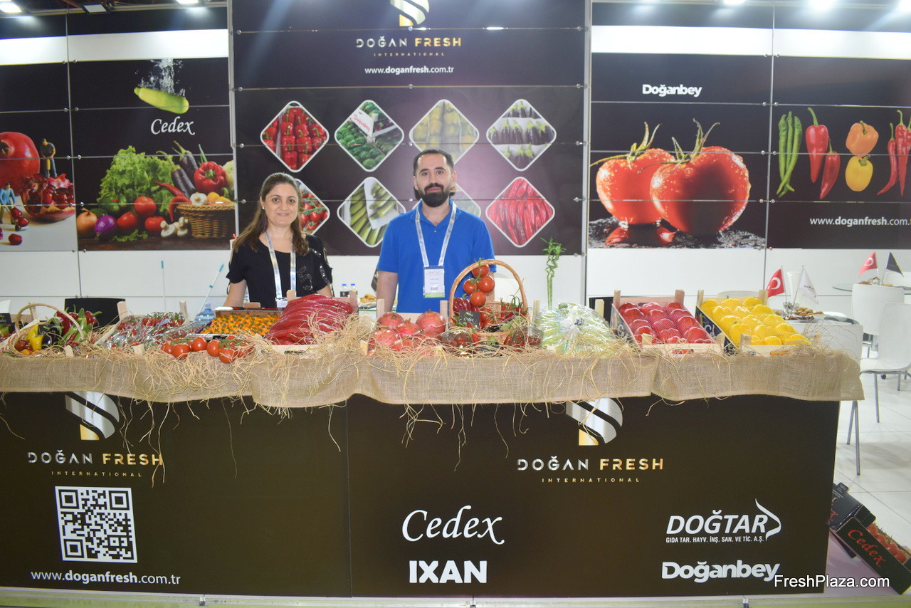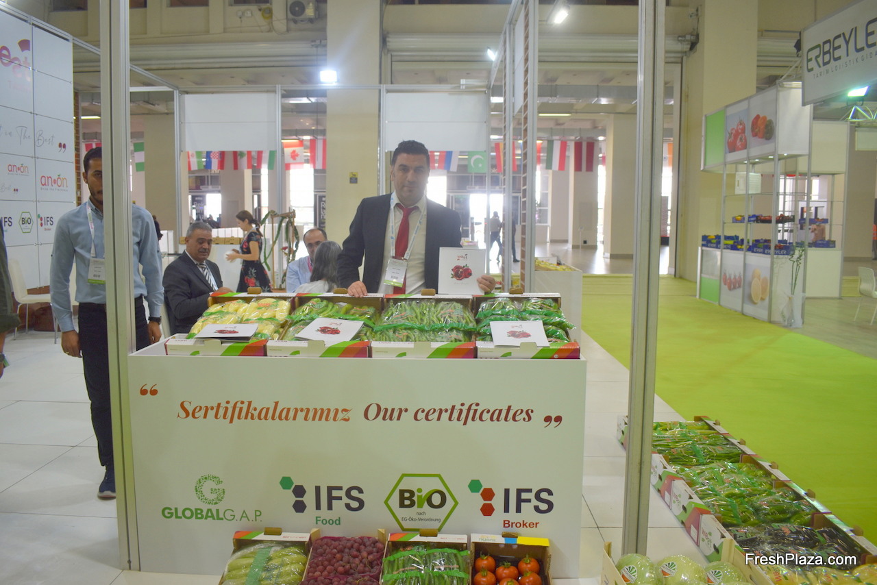 On the right is Ymus Emre Daeli of Dogan Fresh. They export tomatoes, peppers, zuchini and cucumbers to Russia, Europe, Dubai and Ukraine.