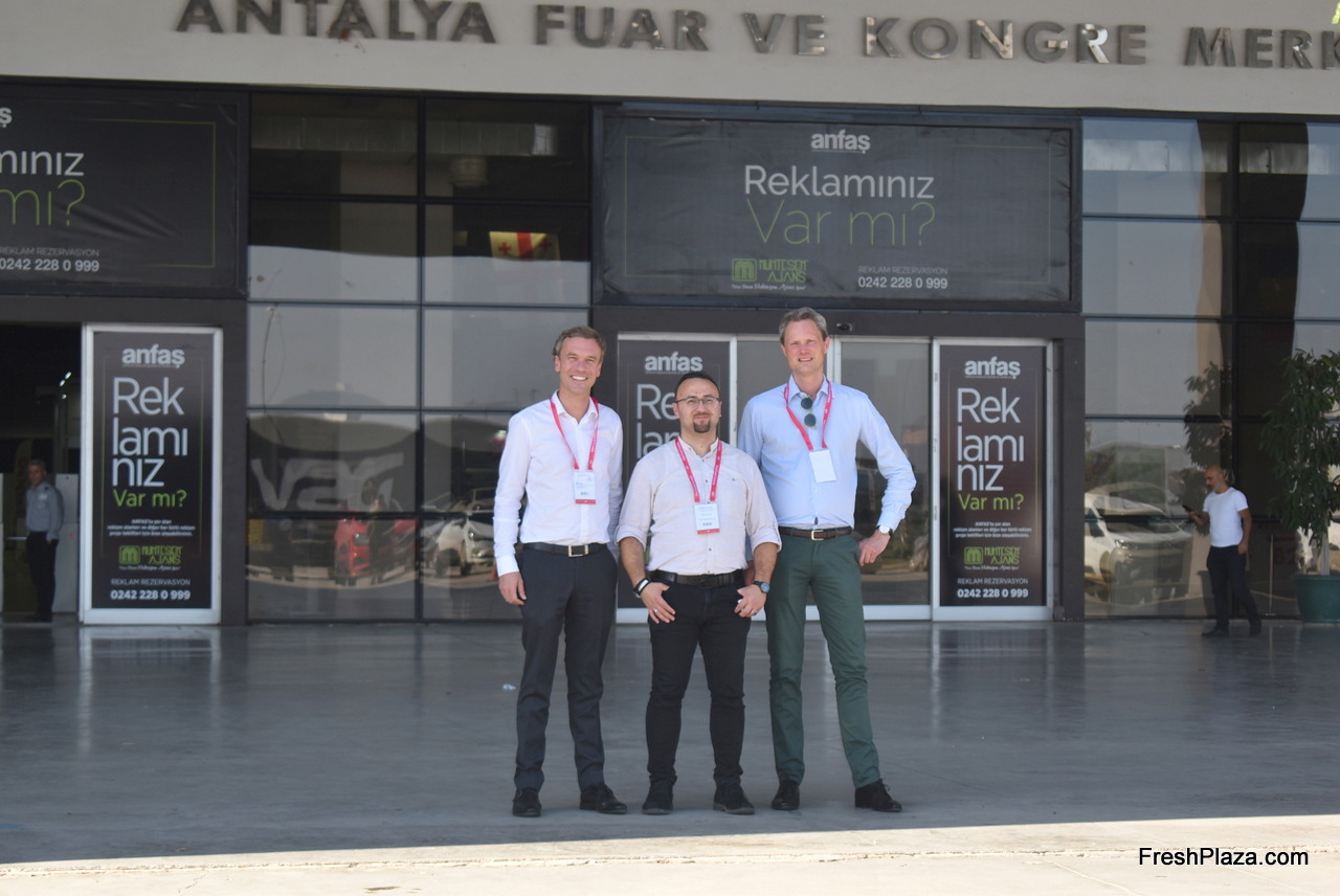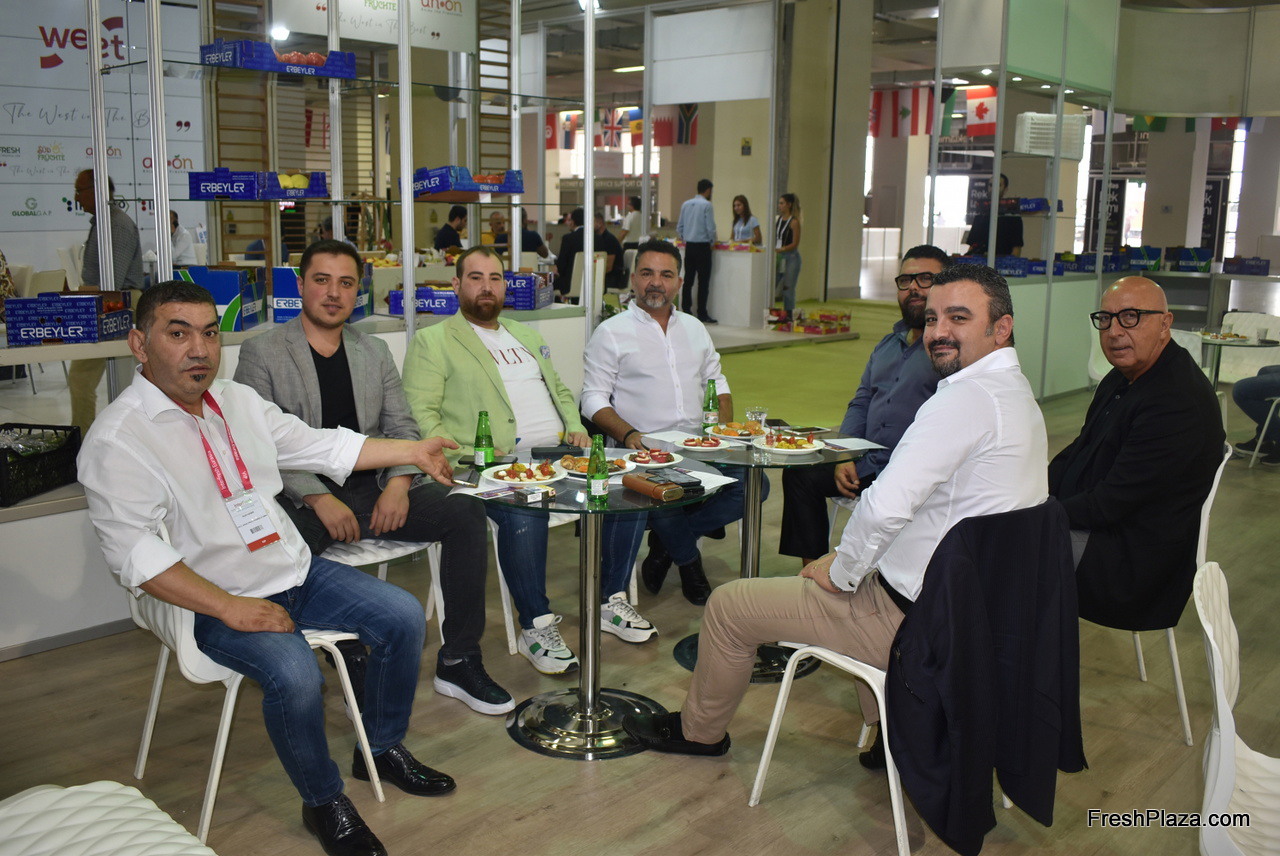 In the middle is Muirat Sari, on his right is Ismail Ozondac for BRS Fresh. They export pomegranates, apples, peppers and other vegetables to Germany, Poland, Italy, Austria, France and Bulgaria.
