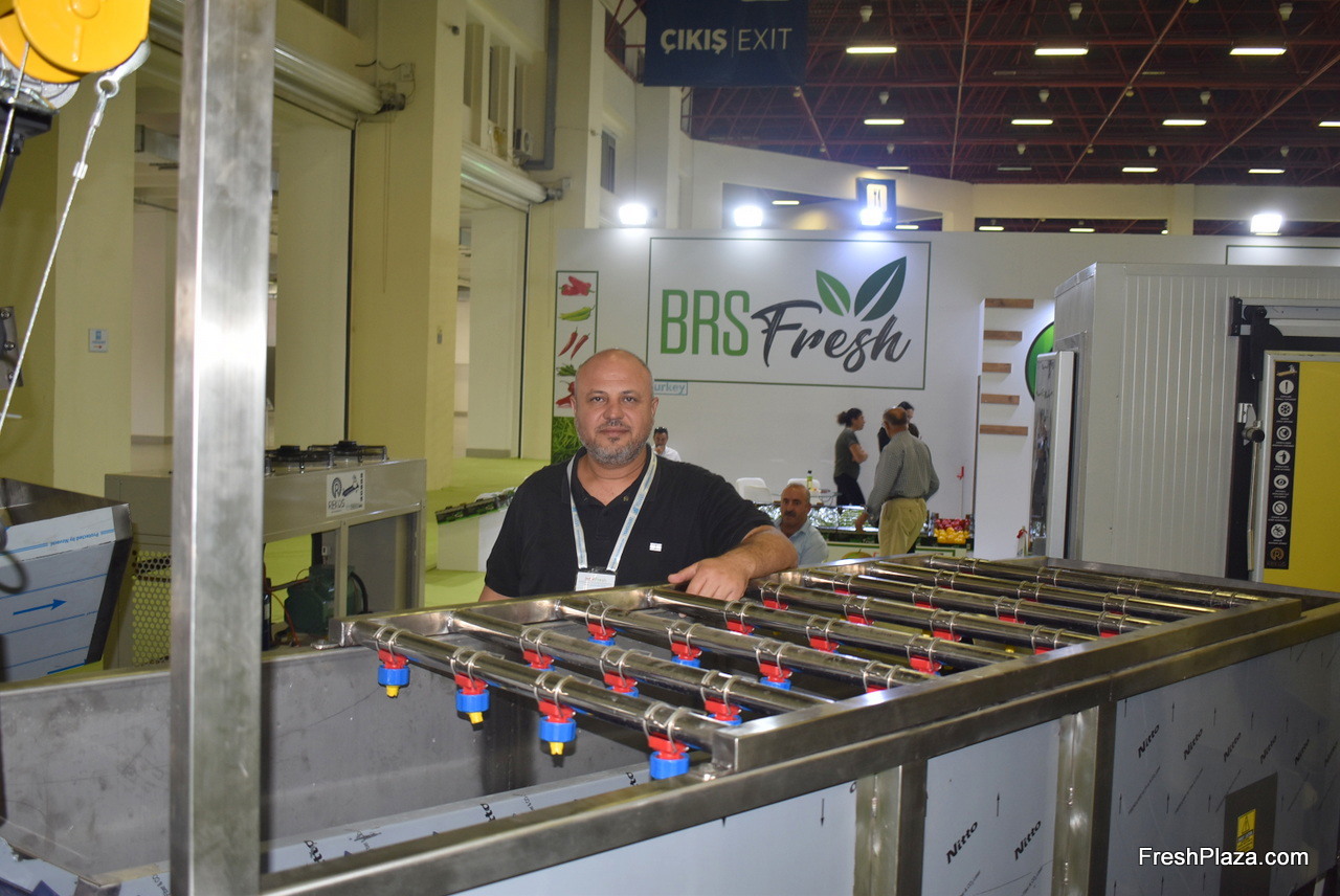 Satis Sorumlusu of Söker. They showcased their entire port harvesting line, Sorumlusu is standing next to a washer.