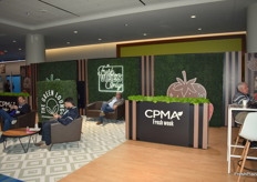Relaxation lounge just outside the entrance of the show floor, sponsored by Mucci Farms.