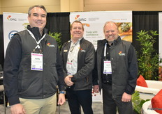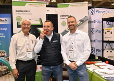 South African brothers Marius (left) and Deon Boonzaier with colleague Mariah Bradley (middle) from Algoma Orchards were happy to attend the show and visit exhibitors.
