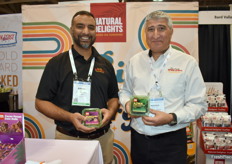 Cole Mucci and Ajit Saxena with Mucci Farms proudly show different packaging options of Savorries Strawberry Tomatoes, the company's latest product introduction.