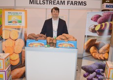 Millstream Farming owner Joel Starling with their sweet potatoes, which is exported from the US to Canada and Europe.