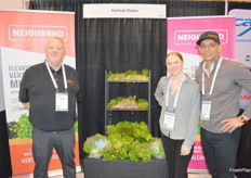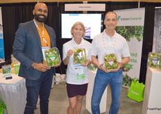 Vertical Choice Andy Eustis, Jessica Olmstead and Jay Kallu grow leafy greens in a greenhouse and happy to be at the show to display their produce.