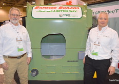 Triple Green Products Mike Kinsey, Rob Horst says their biomass boilers are used on farms for heating.