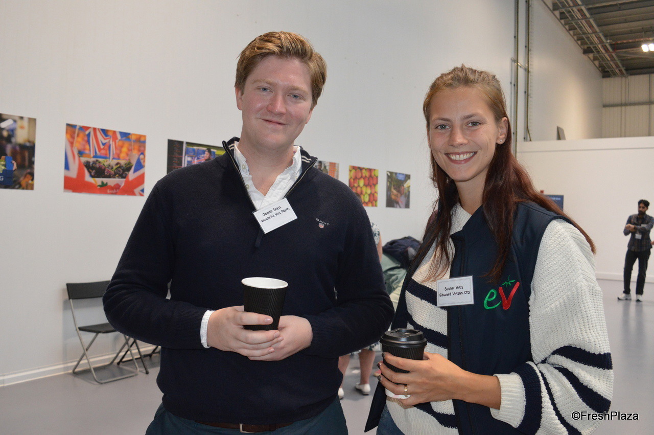 Susan Hill from Edward Vinson soft fruit grower and breeder with James Snell from Windmill Hill Farms who supply soft fruit to Driscolls.