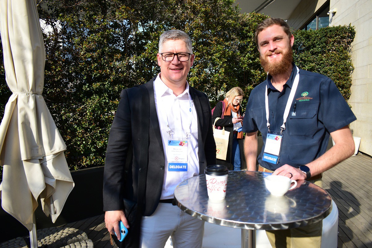 Wolfe Braude of Agbiz in conversation with Ezra Steenkamp, deputy director of the department of agriculture. They closely collaborate on crafting international trade tactics to de-couple agriculture from other economic sectors when negotiating access
