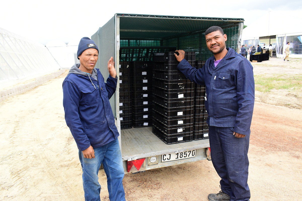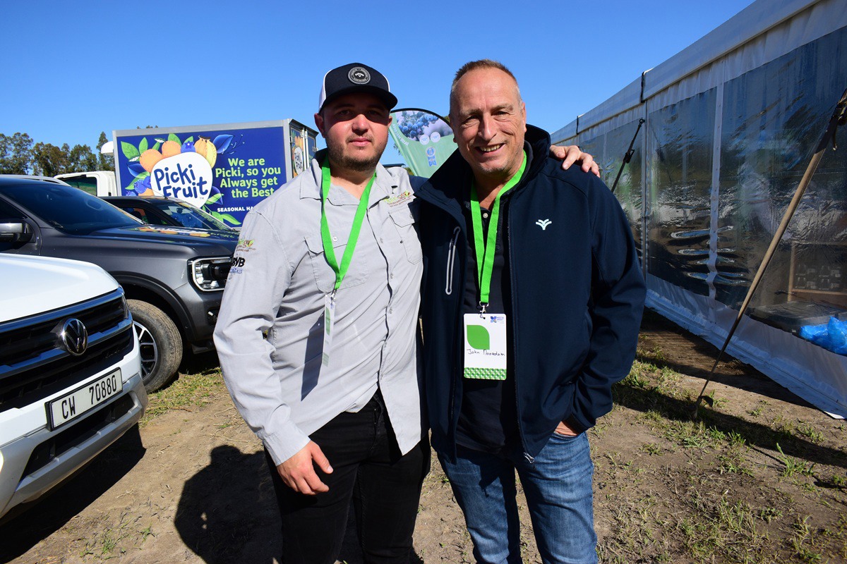 Rossouw Lambrechts of Delecta Fruit beside Erasmus Coetzee, manager of Lebombo Cape's Houtbaai farm
