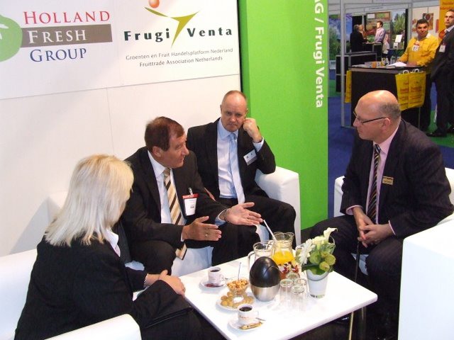 Wim Baljeu (Dutch Frugi Venta) Gert van Burik (Holland Fresh Group) and Nigel R. Jenney of the UK Fresh Produce Consortium with Angela M Stuart, Business Liasion Manager Fresh Produce Consortium.