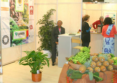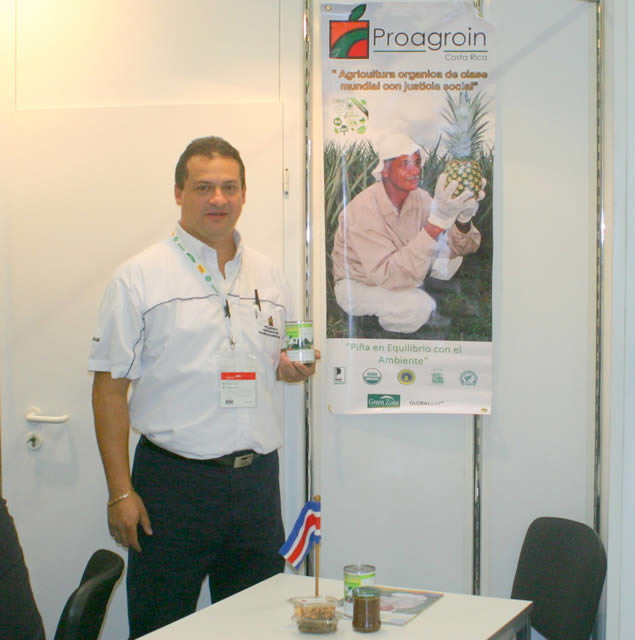 Jorge Sanchez of Proagroin presents the first tin with organic pineapples.