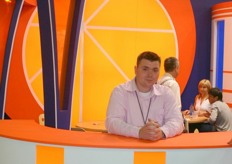 Alexander Barash visits a Russian booth.