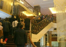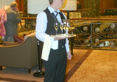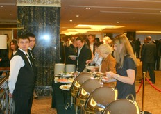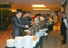 Alexander Visser of Alexport, standing at the table, is very busy with his customers.