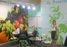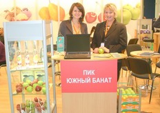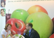 On the right Ksenia Evdokimova with her colleague promoting the US Apple Export Council