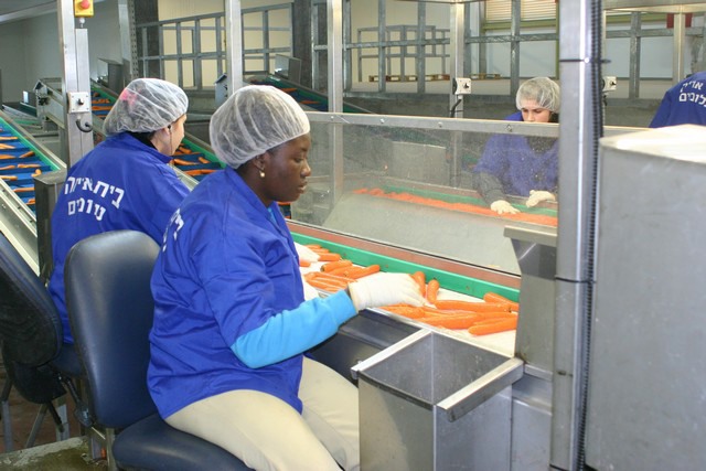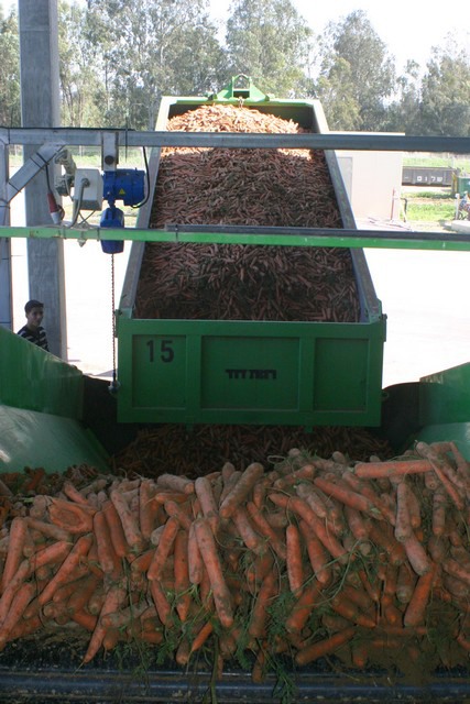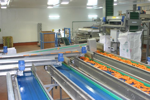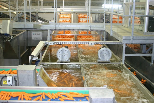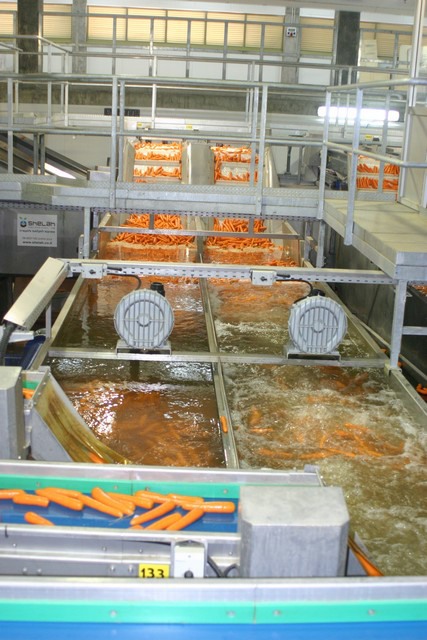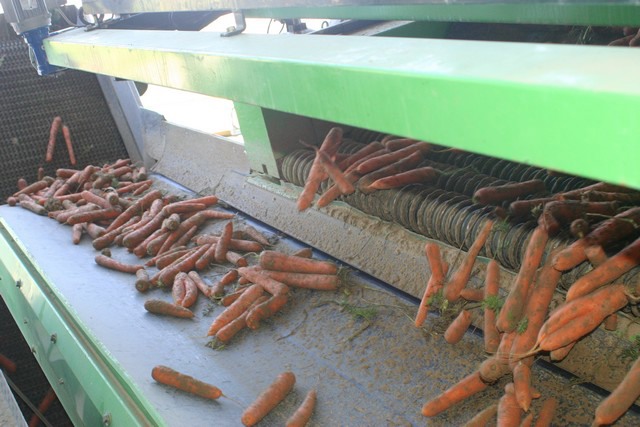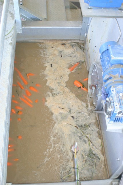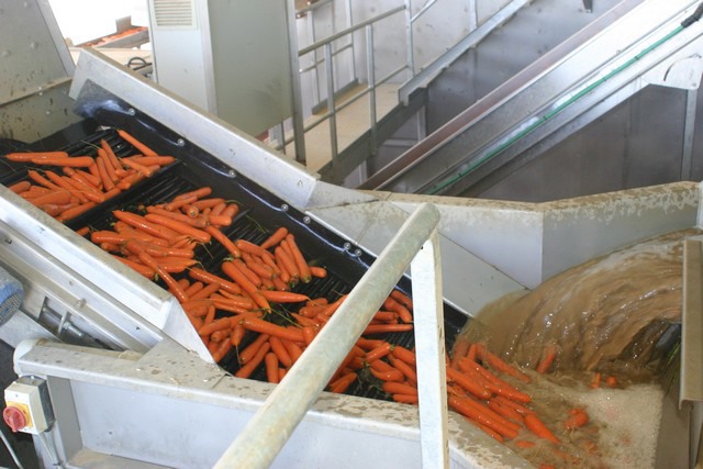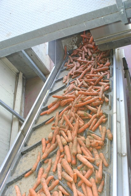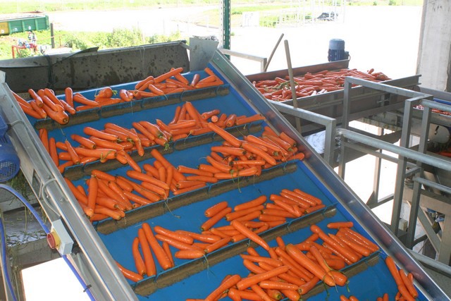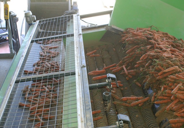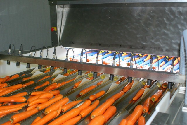 On the belt the cameras take photos of the carrots for the quality, in order the misshapen carrots get seperated.