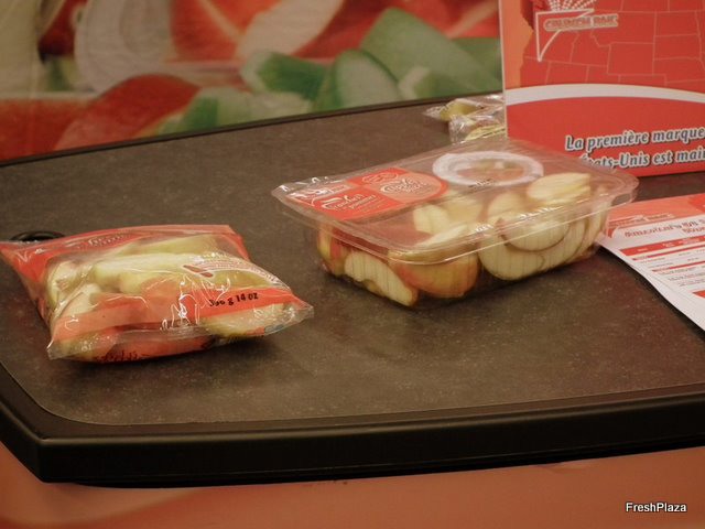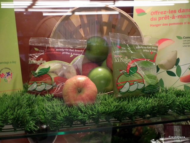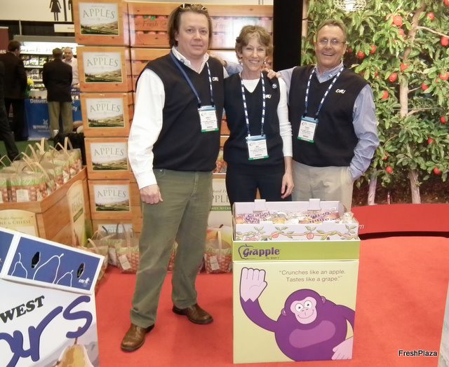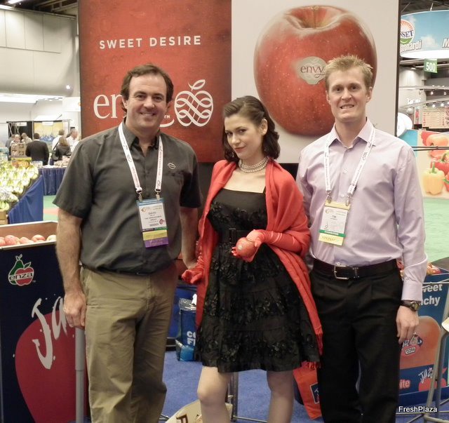 David Nelly, Miss Envy and Tim Jacometti promote the Envy apples. It is a sweet and crunchy apples.