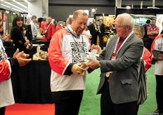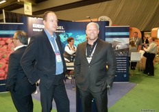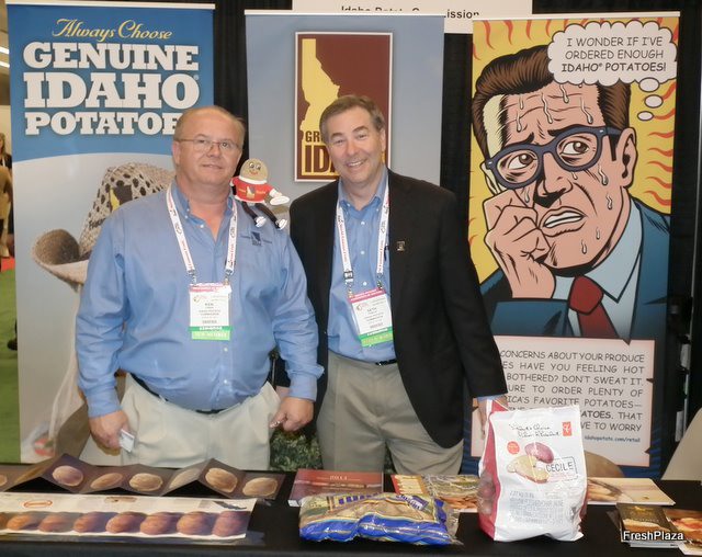 "Ken Tubman and Seth Pemsler of Idaho Potato. Ken has "Spuddy Buddy"on his shoulder."