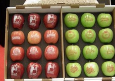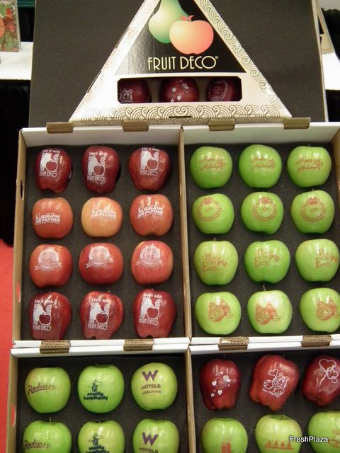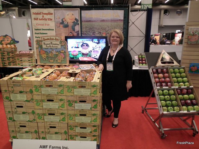 Liz Mitchell of AMF Farms promotes painted pumpkins and printed images on different kind of fresh produce.