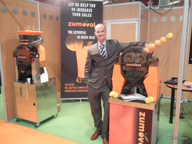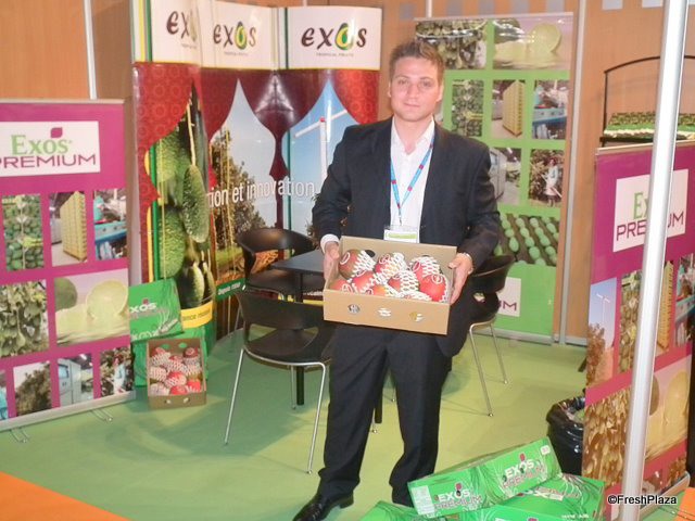Julian Tabbi from Simó Natur promotes the Exos brand. The company imports mainly mangoes and avocados from Morocco and export into Europe.