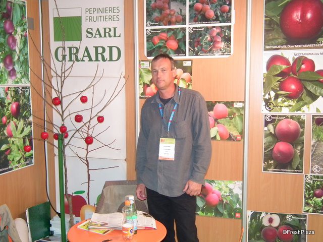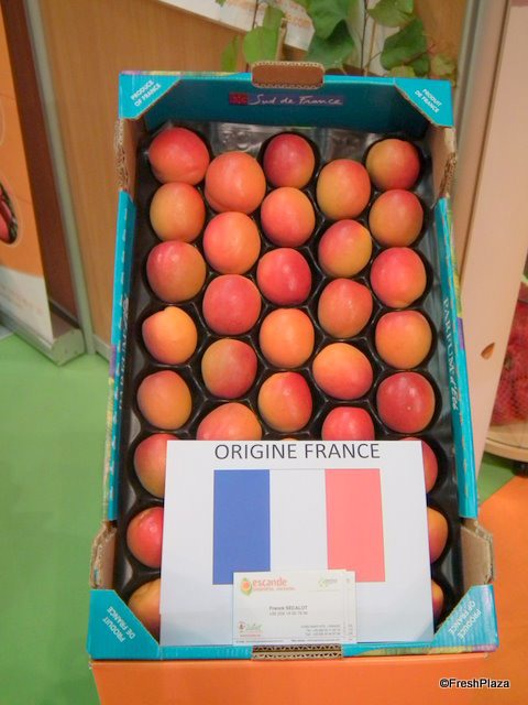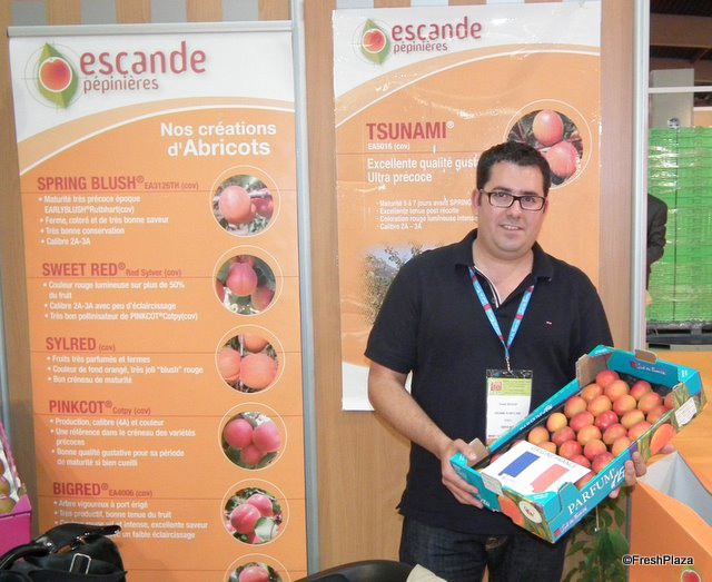 Franck Secalot from Escande Plants presents a new variety of apricot. This is the earliest variety available on the market (apricots in picture harvested 2nd of May 2011).