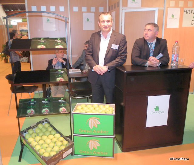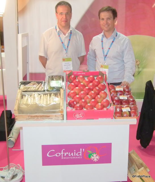 Frédéric Gastaud and Philippe Jean from Cofruid'Oc, a specialist in 3 varieties of French apples from South of France: Granny Smith, Pinklady and Reine des Reinettes.