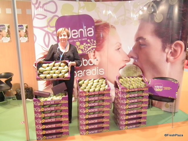 Lourdes Salazar from Top Quality promotes Edenia pear. The company looks for new markets to export the pear.