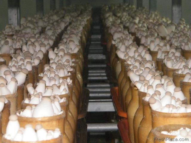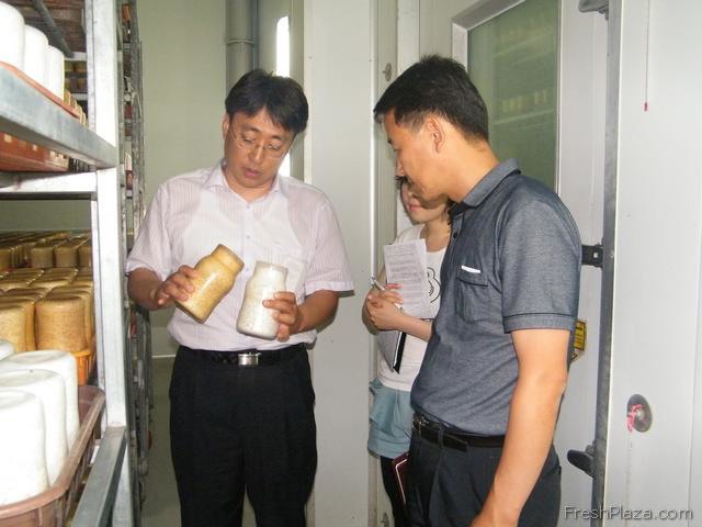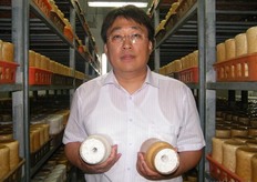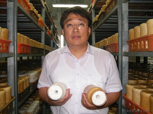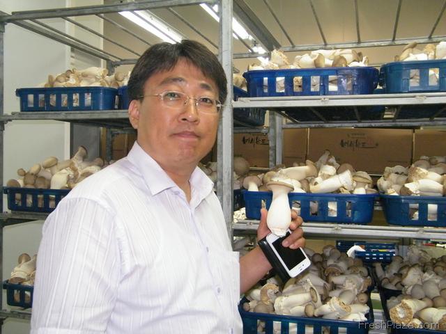 Mr. Lim Seok Bong, Planning and Management manager of MushHeart showing a specialized bottle where mushroom is growing