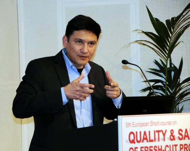 Prof. Luis Cisneros-Zevallos from Texas A&M University (USA) gave a speech on the impact of modified atmosphere packaging (MAP) on quality and storage life of fresh-cut produce. He covered the important aspects about MAP system, and particularly the effect of relative humidity, low oxygen, and high CO2 levels on physiological and physical changes of fresh-cut produce. He also presented some works done by his research group and in other laboratories showing the effects of different MAP conditions on produce quality. In addition, Prof. Cisneros-Zevallos talked about tools that can be used in MAP systems to preserve fresh-cut quality such as chemical preservatives, edible coatings or alternative treatments (mild heat, irradiation, and reduction of water activity).