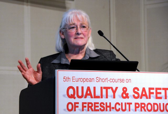 Prof. Marita Cantwell (University of California Davis, USA) gave some considerations on handling and processing of root vegetables, in particular on potatoes, carrots, onions and garlic. She suggested the use of acidulant treatments in combination with modified atmospheres to retard discoloration on fresh-cut potatoes and the application of hydroscopic coatings to control whitening of baby carrot surface. Prof. Cantwell highlighted that quality of raw material is also a key factor for obtaining an acceptable shelf-life of fresh-cut onion products (whole peeled, sliced, diced) and that low temperatures in combination with high carbon dioxide contribute to maintain color and texture in cut onions and peeled garlic during storage. Finally she pointed out the importance of the selection of varieties characterized by long dormancy period and resistance to bruising to avoid internal sprout growth in onions and garlic.