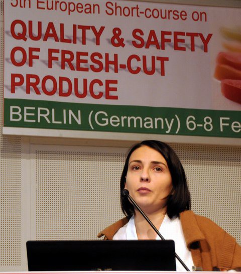 Dr. Annette Förschler, from QS Qualität und Sicherheit Gmbh (Germany), showed the Guidelines of QS for preparation of fresh products. QS is a quality assurance scheme for fresh foodstuffs that involves all participants in the food industry – from farm to shop. By inspecting and integrating the entire supply chain, a certification mark creates the basis for increase food safety and well-founded trust from the consumers. Guideline production of fruit, vegetables and potatoes is aimed to avoid microbiological contamination, in particular focusing on specific hygiene rules and a microbiological monitoring.
