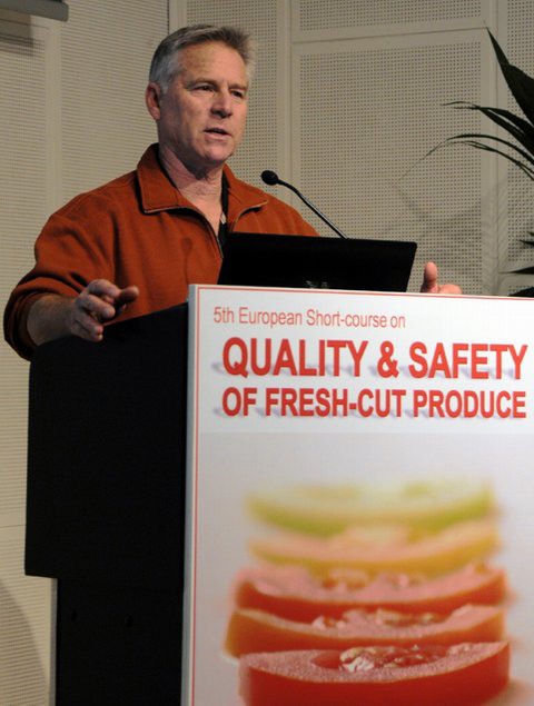 "Prof. Trevor Suslow (University of California Davis, USA), extensively detailed the aspects relating the biology and control systems of spoilage and pathogenic microorganisms. The U.S. Public Health Service has identified a number of microorganisms associated with foodborne illness that are notable either because of the severity or because of the prevalence of the illness they cause. Foodborne microbial pathogens associated with the consumption of fresh fruits and vegetables include Cyclospora cayetanensis, Escherichia coli O157:H7, hepatitis A virus, Listeria monocytogenes, Norovirus, Salmonella spp. and Shigella spp., coming from different sources such as raw material, production processes and/or environmental contaminations (water, air, surfaces, packaging, workers, insects, animals). Prof. Suslow, in a second speech, reported the microbiological testing presently used for the qualitative and quantitative detection of pathogens in fresh-cut products. In particular, Prof. Suslow foc