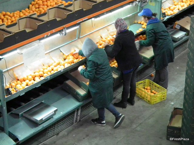 The clementines are put in order, so the Maf Roda machine can easily put them in boxes.