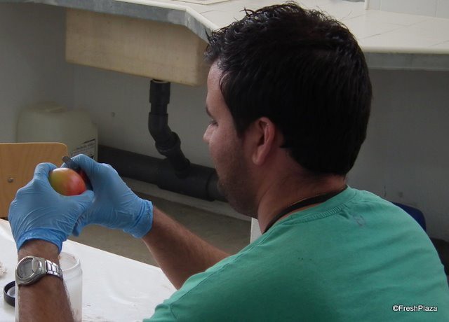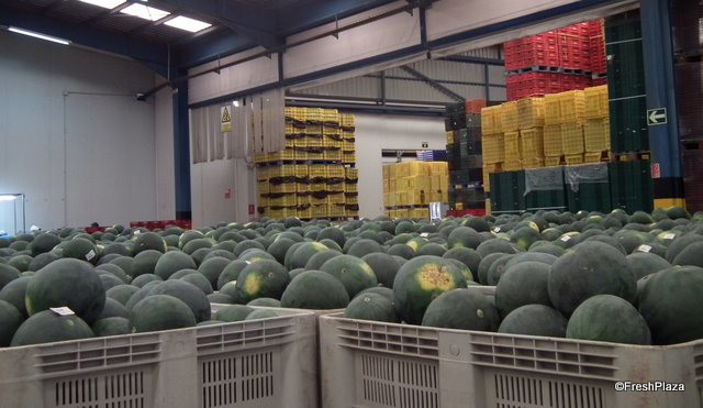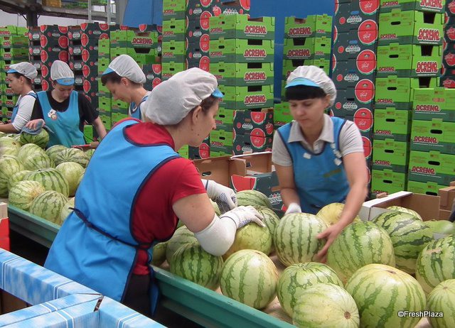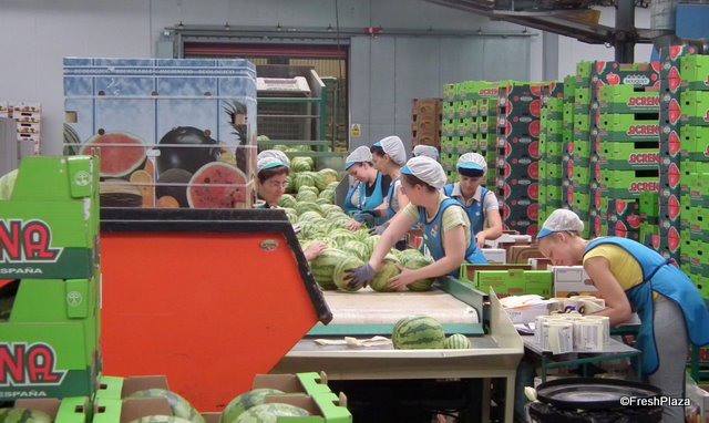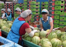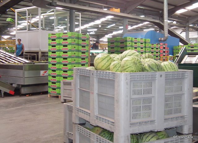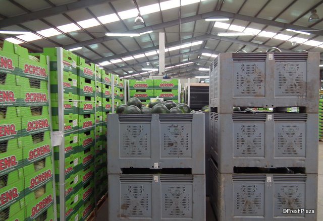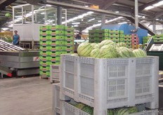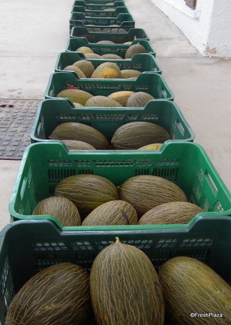 Inside the packing house the melons are prepared for distribution.