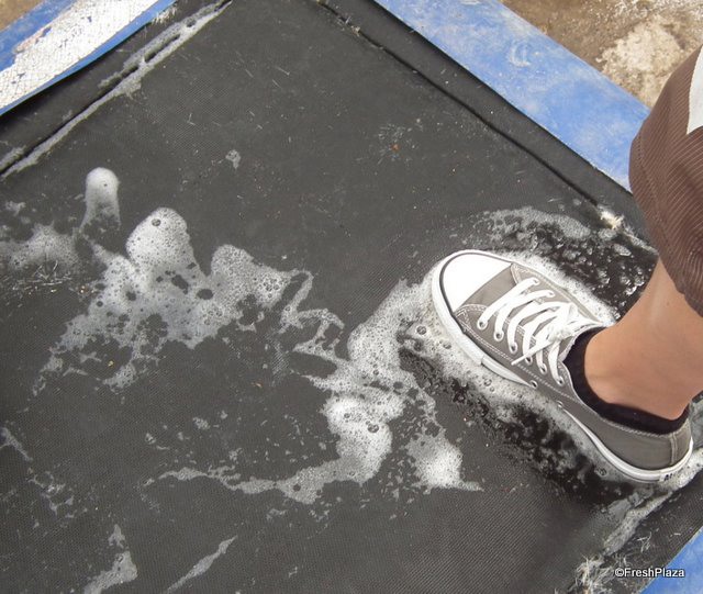 At the entrance to each tunnel are a series of doorways - one must be closed before the next is opened - to ensure insects are kept at bay and a show disinfectant mat.