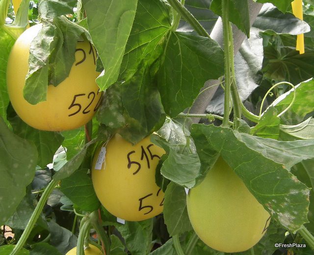 Melons that have been numbered to show that they have been selected for exhibiting the desired genetic traits.