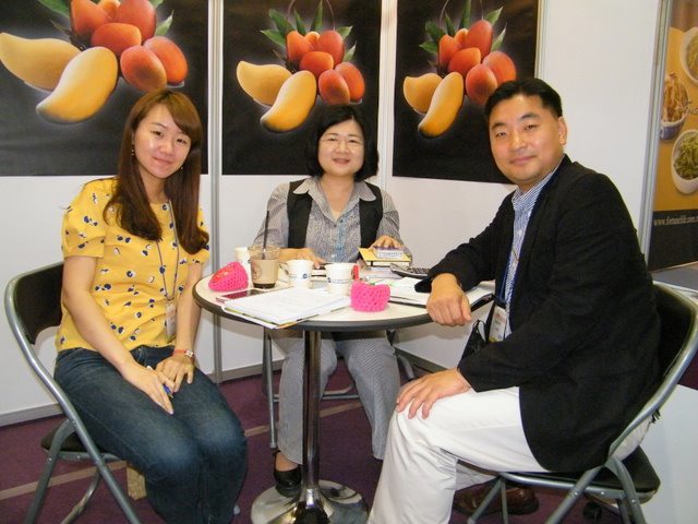 Ms.Kacy Choi (left) and Mr. June Choi, managing director of Soo Il Commerce Inc.(Korea) together with Ms.Irene Lu of Chang Lung Agriculture- Taiwan