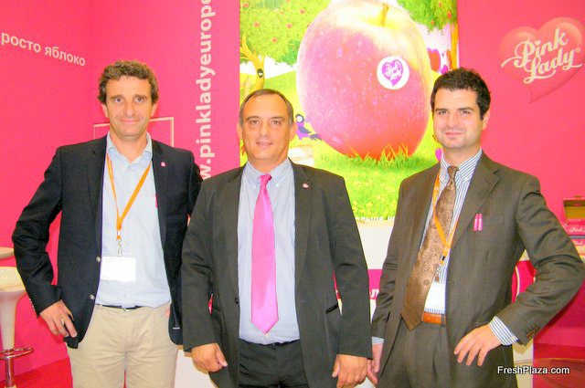 Ranaud Pierson, (Director/C.E.O of Star Fruits) with Mr.Jean-Louis Colombat (Trade Marketing Manager) and Damien Beacco (Trade Marketing Executive) of Pink Lady Europe
