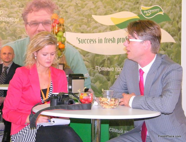 Our very own Gertrude (from FreshPlaza´s Dutch website- www.agf.nl) interviewing Michel Hoogendoorn, sales manager of the Greenery for the Eastern European countries/Russia